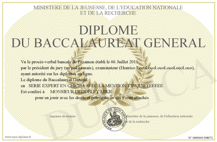 Envoyez par email votre Diplome du baccalaureat general personalisé