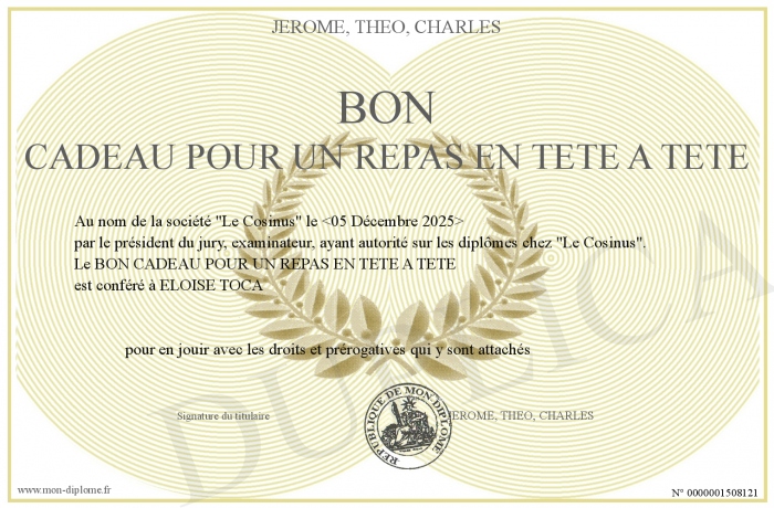Envoyez par email votre BON CADEAU POUR UN REPAS EN TETE A TETE personalisé