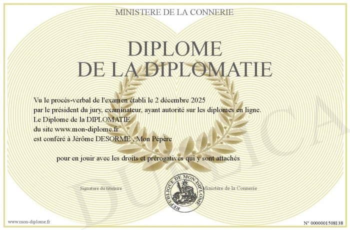 Envoyez par email votre Diplôme de la DIPLOMATIE personalisé