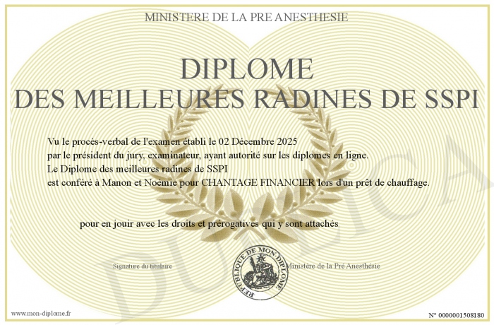 Envoyez par email votre Diplôme des meilleures radines de SSPI personalisé