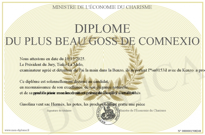 Envoyez par email votre Diplôme du plus beau goss de comnexio personalisé