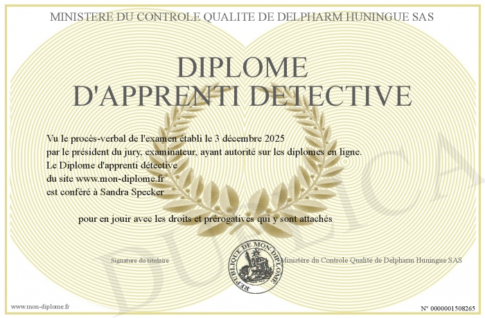 Envoyez par email votre Diplôme d'apprenti détective personalisé