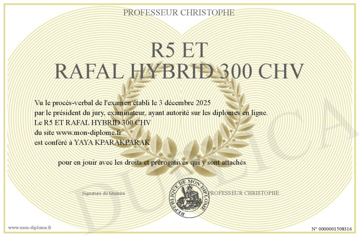 Envoyez par email votre R5 ET RAFAL HYBRID 300 CHV personalisé