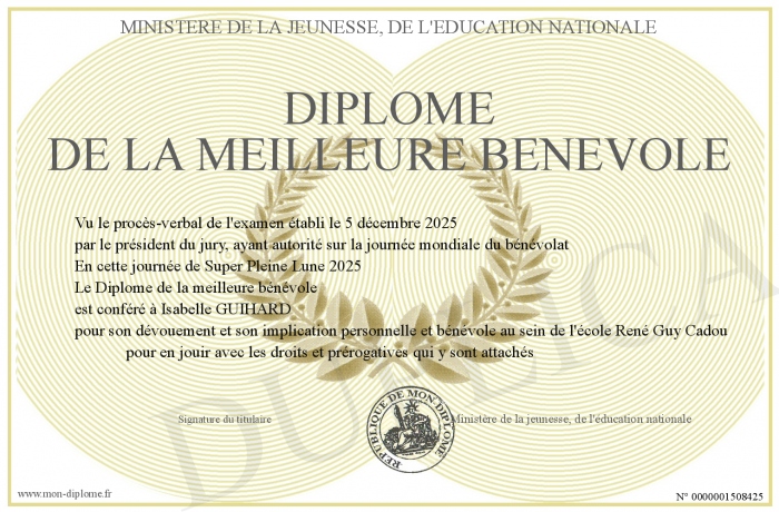 Envoyez par email votre Diplôme de la meilleure bénévole personalisé