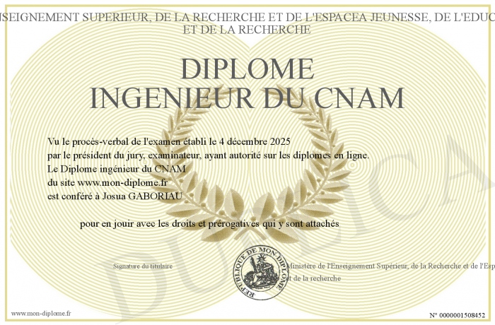 Envoyez par email votre Diplôme ingénieur du CNAM personalisé