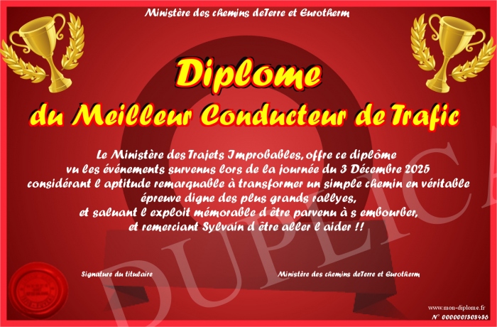Envoyez par email votre Diplôme du Meilleur Conducteur de Trafic personalisé