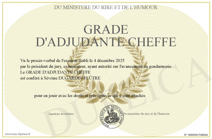 Envoyez par email votre GRADE D'ADJUDANTE CHEFFE personalisé