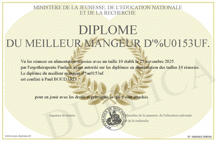 Envoyez par email votre Diplôme du meilleur mangeur d'oeuf. personalisé