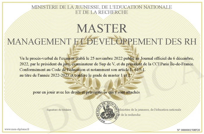 Envoyez par email votre MASTER Management et Développement des RH personalisé