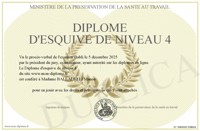 Envoyez par email votre Diplôme d'esquive de niveau 4 personalisé