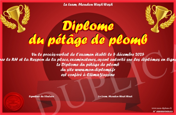 Envoyez par email votre Diplôme du pétâge de plomb personalisé