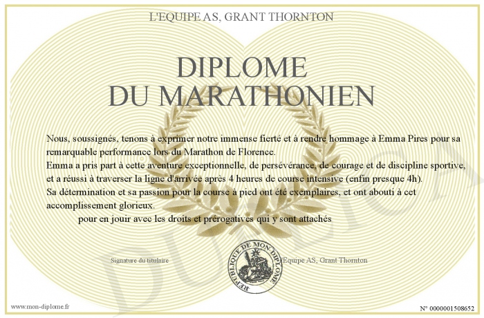 Envoyez par email votre Diplôme du marathonien personalisé