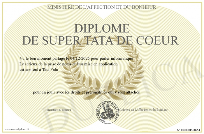 Envoyez par email votre Diplôme de Super Tata de Coeur personalisé
