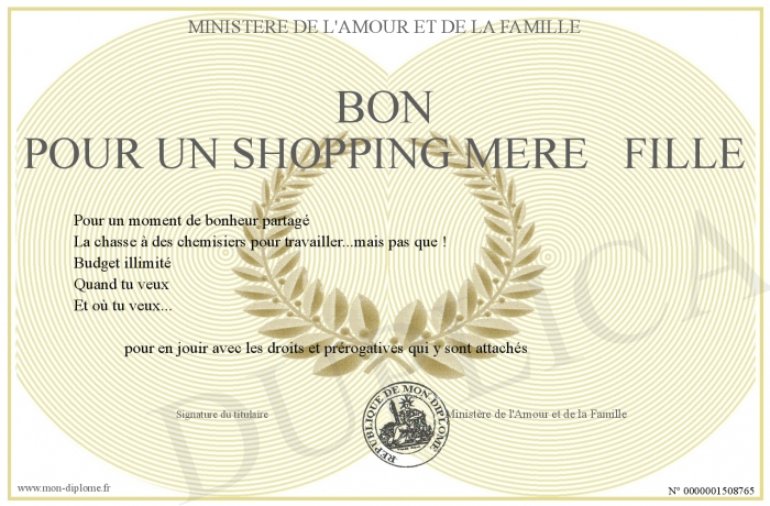 Envoyez par email votre Bon pour un Shopping Mère Fille personalisé