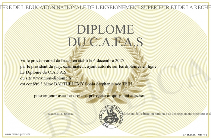 Envoyez par email votre Diplôme du C.A.F.A.S personalisé