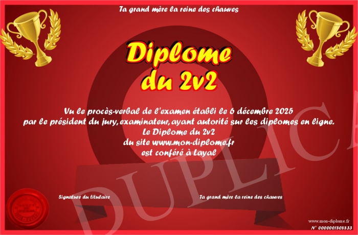 Envoyez par email votre Diplôme du 2v2 personalisé