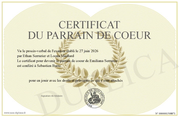 Envoyez par email votre Certificat du Parrain de coeur personalisé