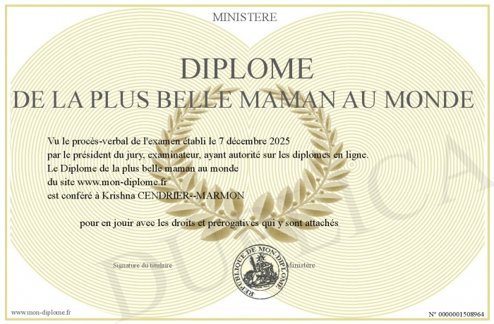 Envoyez par email votre Diplôme de la plus belle maman au monde personalisé