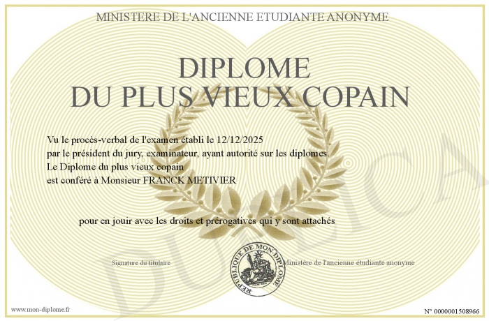 Envoyez par email votre Diplôme du plus vieux copain personalisé