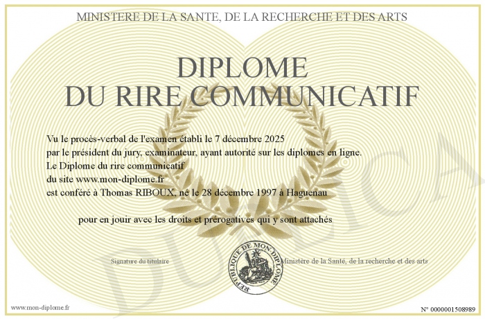 Envoyez par email votre Diplôme du rire communicatif personalisé