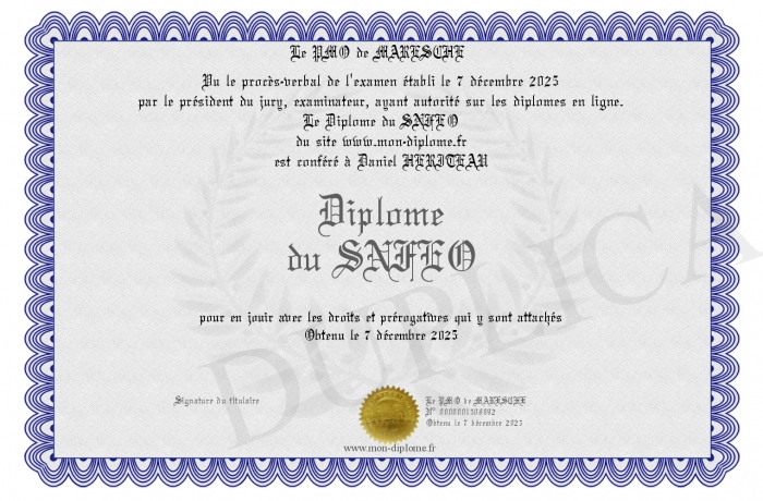 Envoyez par email votre Diplôme du SNFEO personalisé
