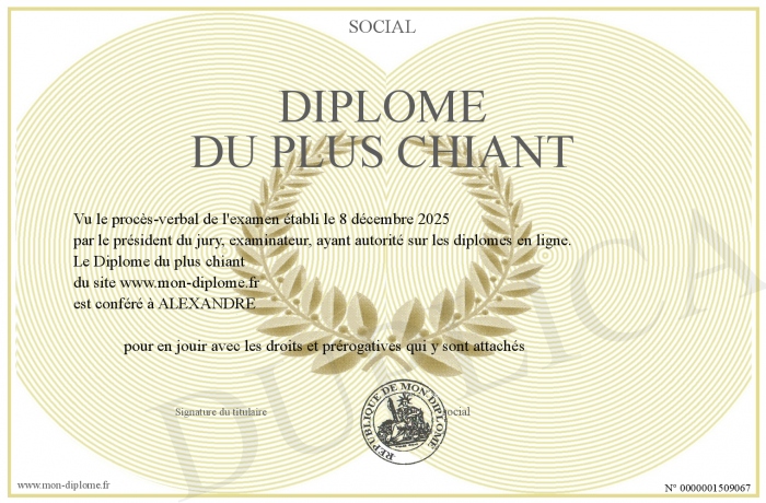 Envoyez par email votre Diplôme du plus chiant personalisé