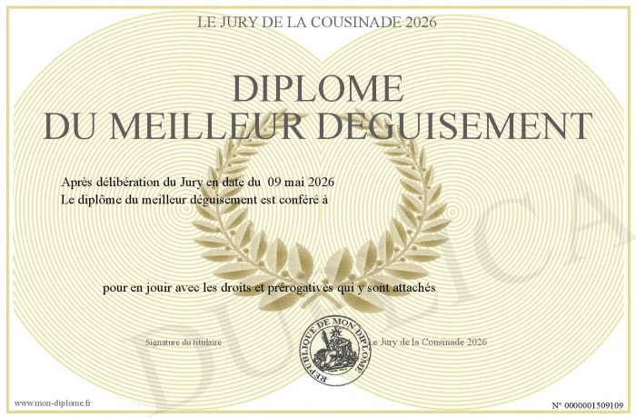 Envoyez par email votre Diplôme du meilleur déguisement personalisé