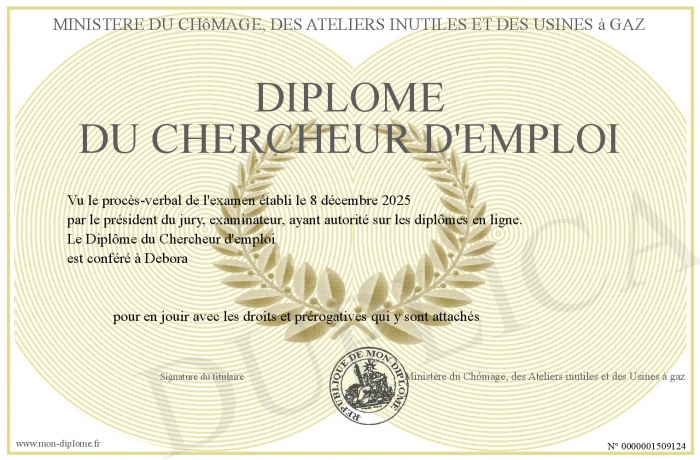 Envoyez par email votre Diplôme du Chercheur d'emploi personalisé