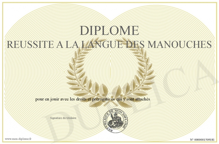 Envoyez par email votre Diplôme réussite a la langue des manouches personalisé