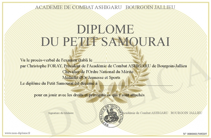 Envoyez par email votre DIPLOME DU PETIT SAMOURAI personalisé