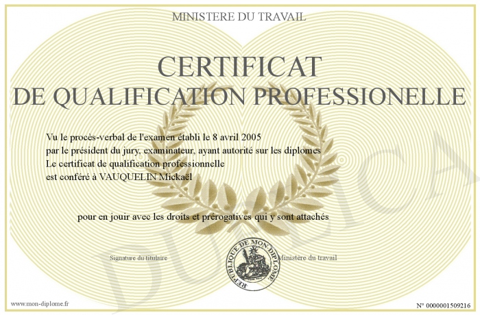 Envoyez par email votre certificat de qualification professionelle personalisé