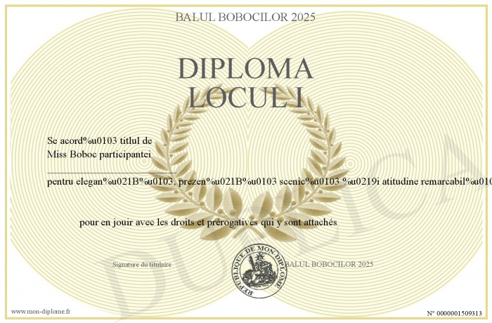 Envoyez par email votre Diploma locul I personalisé