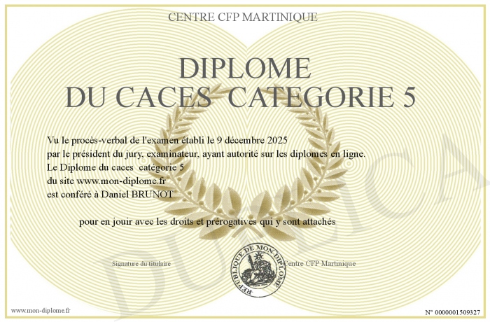 Envoyez par email votre Diplôme du caces catégorie 5 personalisé