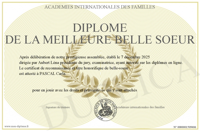 Envoyez par email votre Diplôme de la meilleure belle soeur personalisé