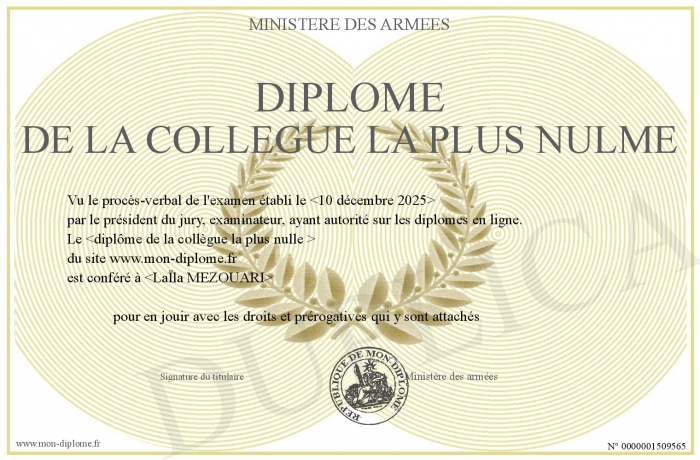 Envoyez par email votre Diplôme de la collègue la plus nulme personalisé