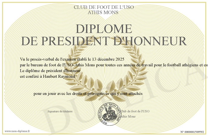 Envoyez par email votre Diplôme de président d'honneur personalisé