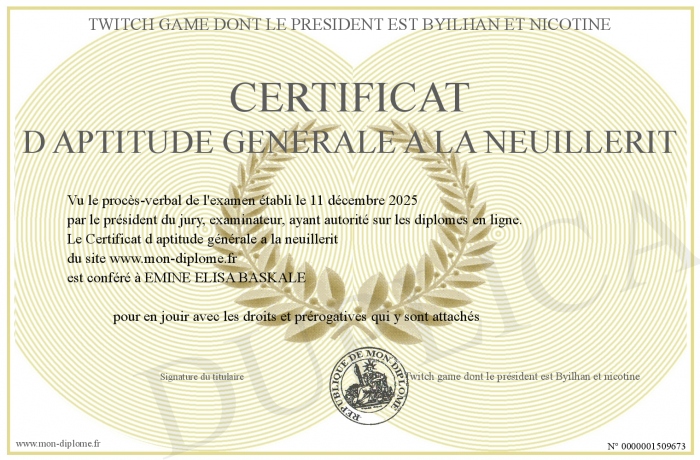 Envoyez par email votre Certificat d aptitude générale a la neuillerit personalisé