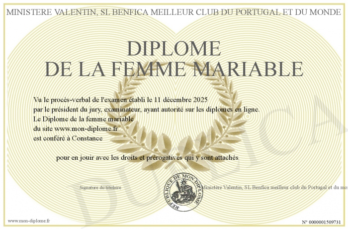 Envoyez par email votre Diplôme de la femme mariable personalisé