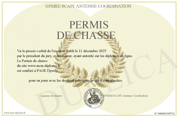 Envoyez par email votre Permis de chasse personalisé