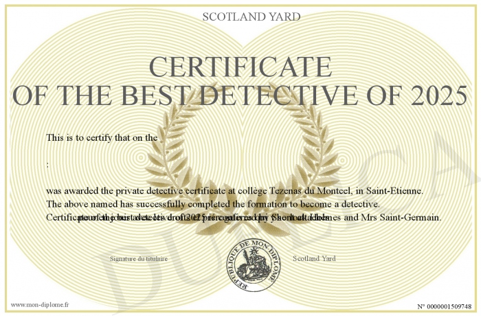 Envoyez par email votre Certificate of the best detective of 2025 personalisé