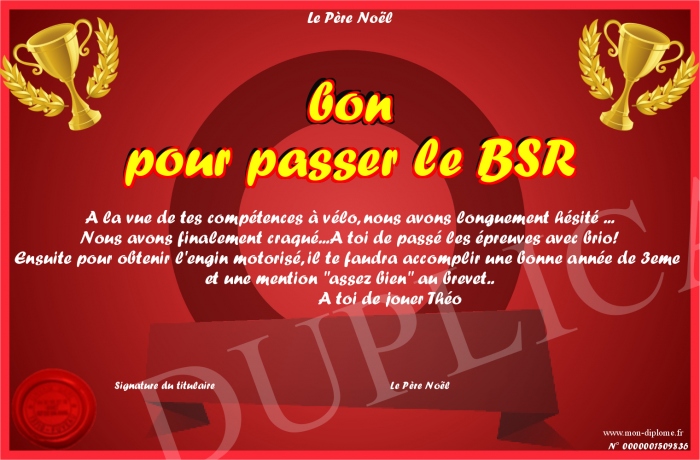 Envoyez par email votre bon pour passer le BSR personalisé