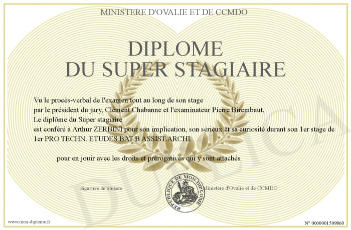 Envoyez par email votre Diplôme du Super stagiaire personalisé