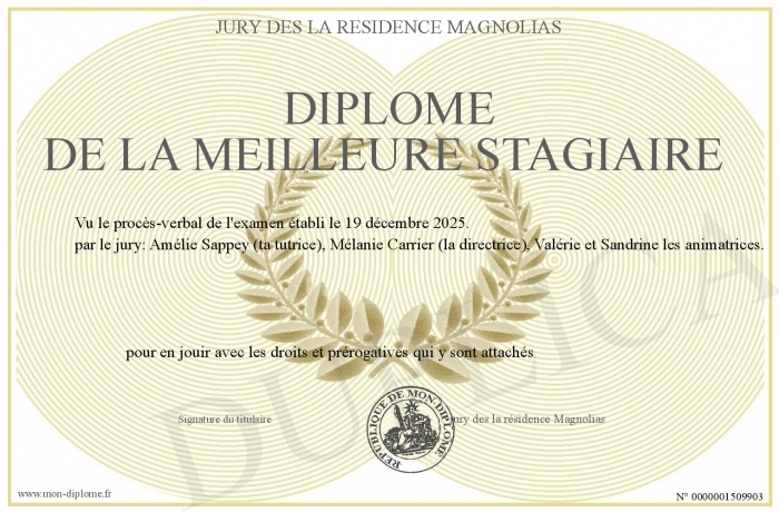 Envoyez par email votre Diplôme de la meilleure stagiaire personalisé