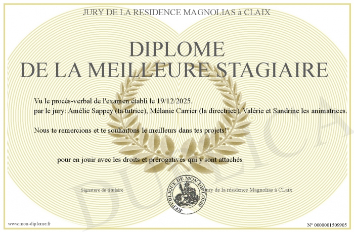 Envoyez par email votre Diplôme de la meilleure stagiaire personalisé