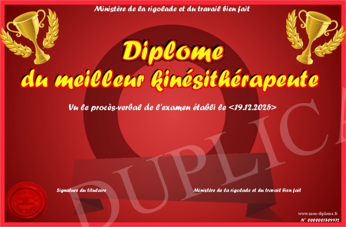 Envoyez par email votre Diplôme du meilleur kinésithérapeute personalisé