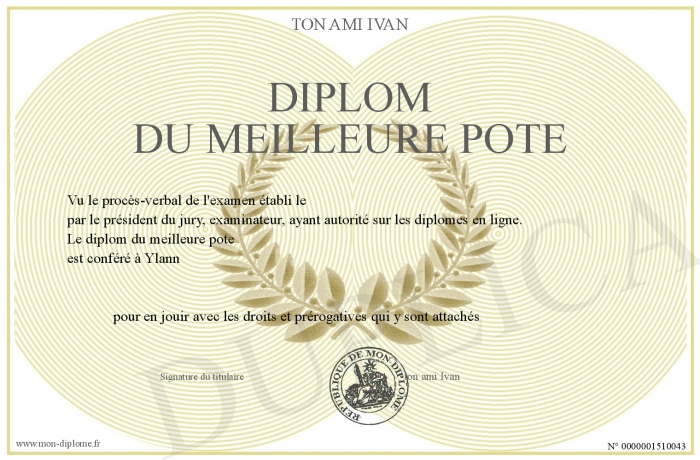 Envoyez par email votre diplom du meilleure pote personalisé