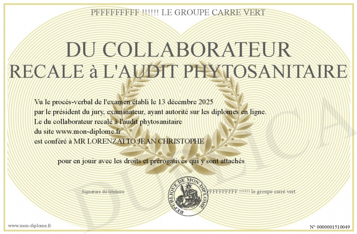 • du collaborateur recalé à l'audit phytosanitaire