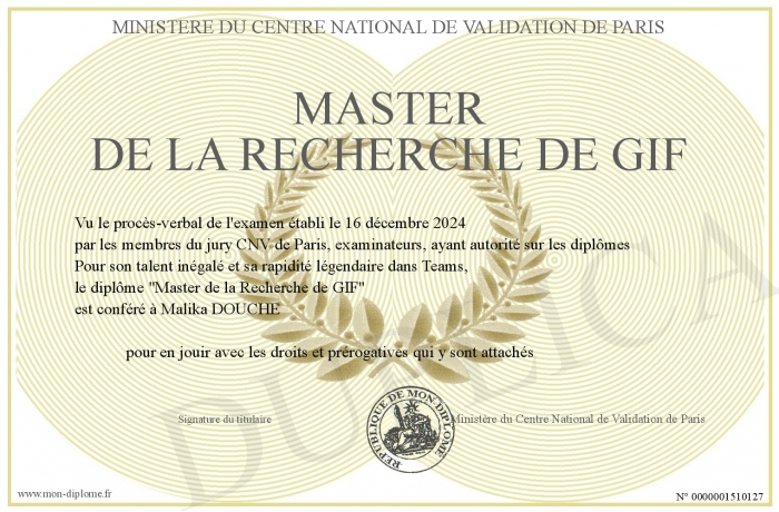 envoyé par le Ministère du Centre National de Validation de Paris !