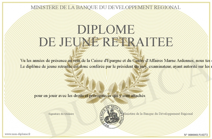 Envoyez par email votre Diplôme de Jeune Retraitée personalisé