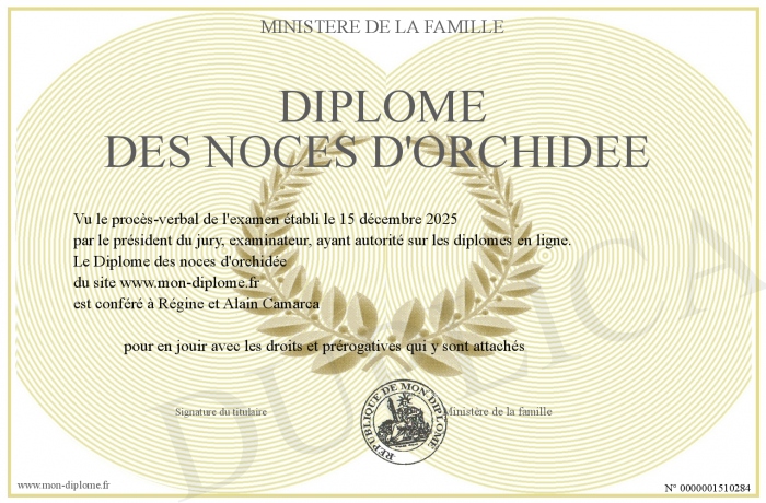 Envoyez par email votre Diplôme des noces d'orchidée personalisé